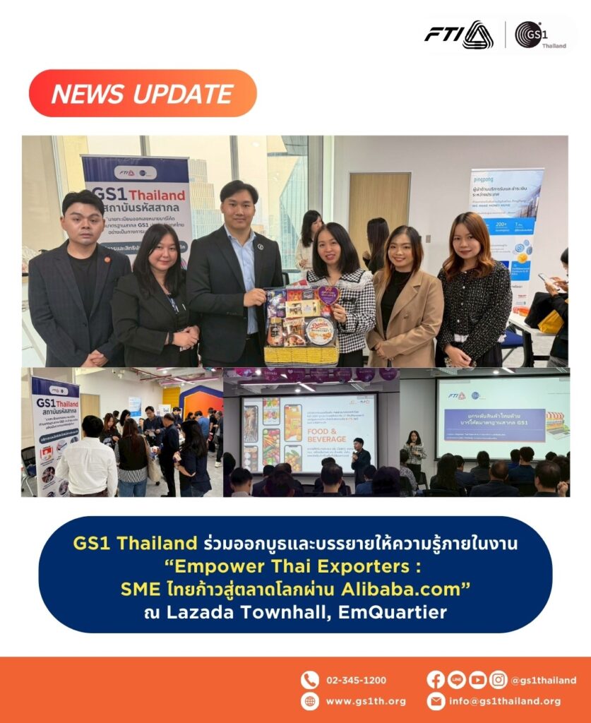 GS1 Thailand ร่วมออกบูธและบรรยายให้ความรู้ภายในงานสัมมนา “Empower Thai Exporters : SME ไทยก้าวสู่ตลาดโลกผ่าน Alibaba.com” เมื่อวันศุกร์ที่ 19 ธันวาคม 2568 ณ Lazada Townhall, EmQuartier Read More 26/12/2025
