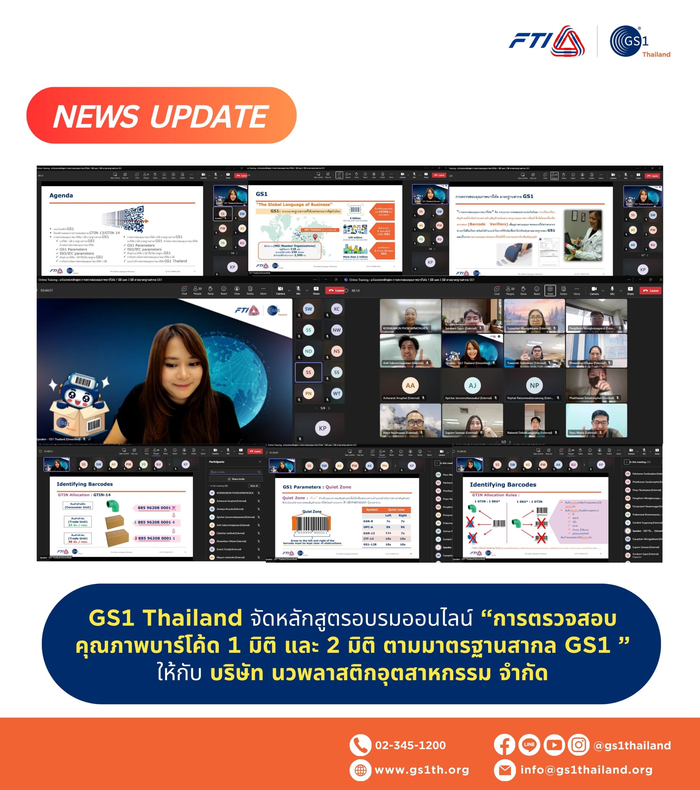 GS1 Thailand จัดหลักสูตรอบรมออนไลน์ “การตรวจสอบคุณภาพบาร์โค้ด 1 มิติ และ 2 มิติ ตามมาตรฐานสากลGS1” ให้กับ บริษัท นวพลาสติกอุตสาหกรรม จำกัด